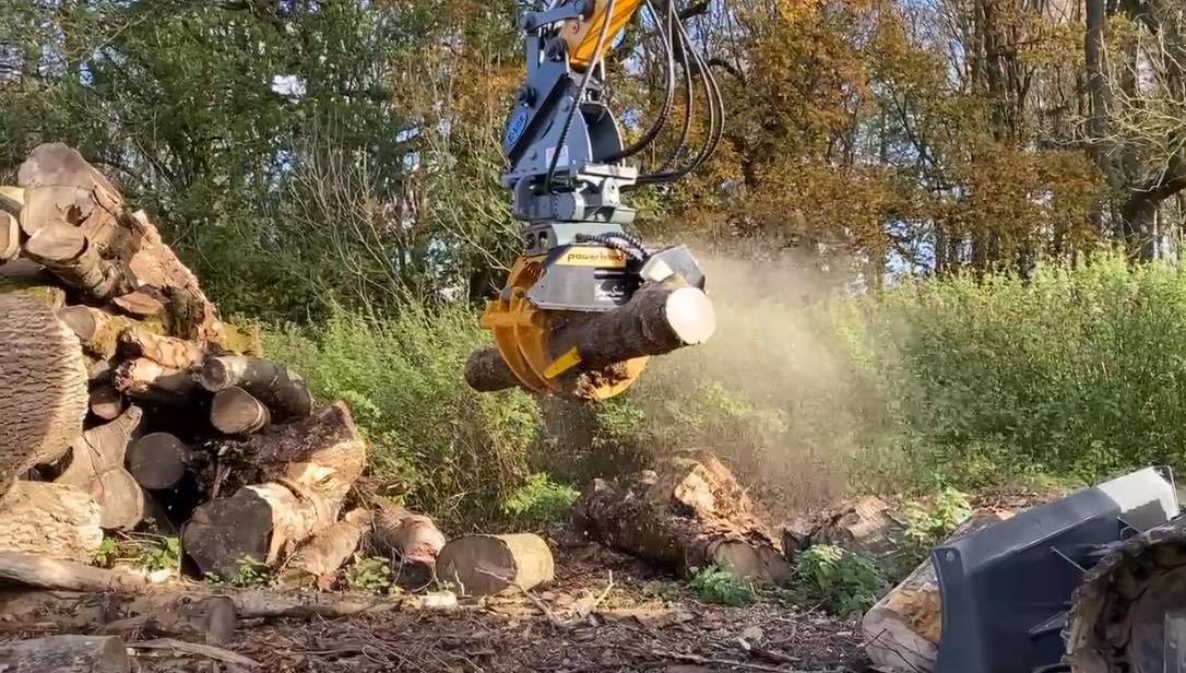 The Powerhand Grapple Saw unit can easily be attached onto the Ex Series grapple, allowing you to perform tasks what were previously manual, from the seat in your cab.